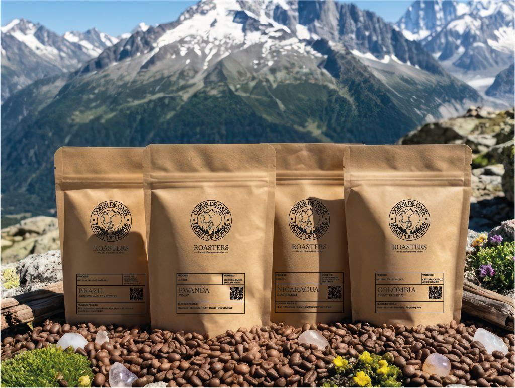 This collection begins with lower-altitude Brazilian coffee and gradually climbs through Central America and Colombia before reaching the volcanic highlands of Rwanda a simple way to taste how elevation influences flavour.